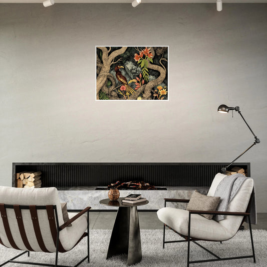 Our bird wall art is available on various surfaces, including canvas, wood, framed posters, acrylic, and brushed aluminum. For more animal-inspired prints, visit our Animal Wall Art page.