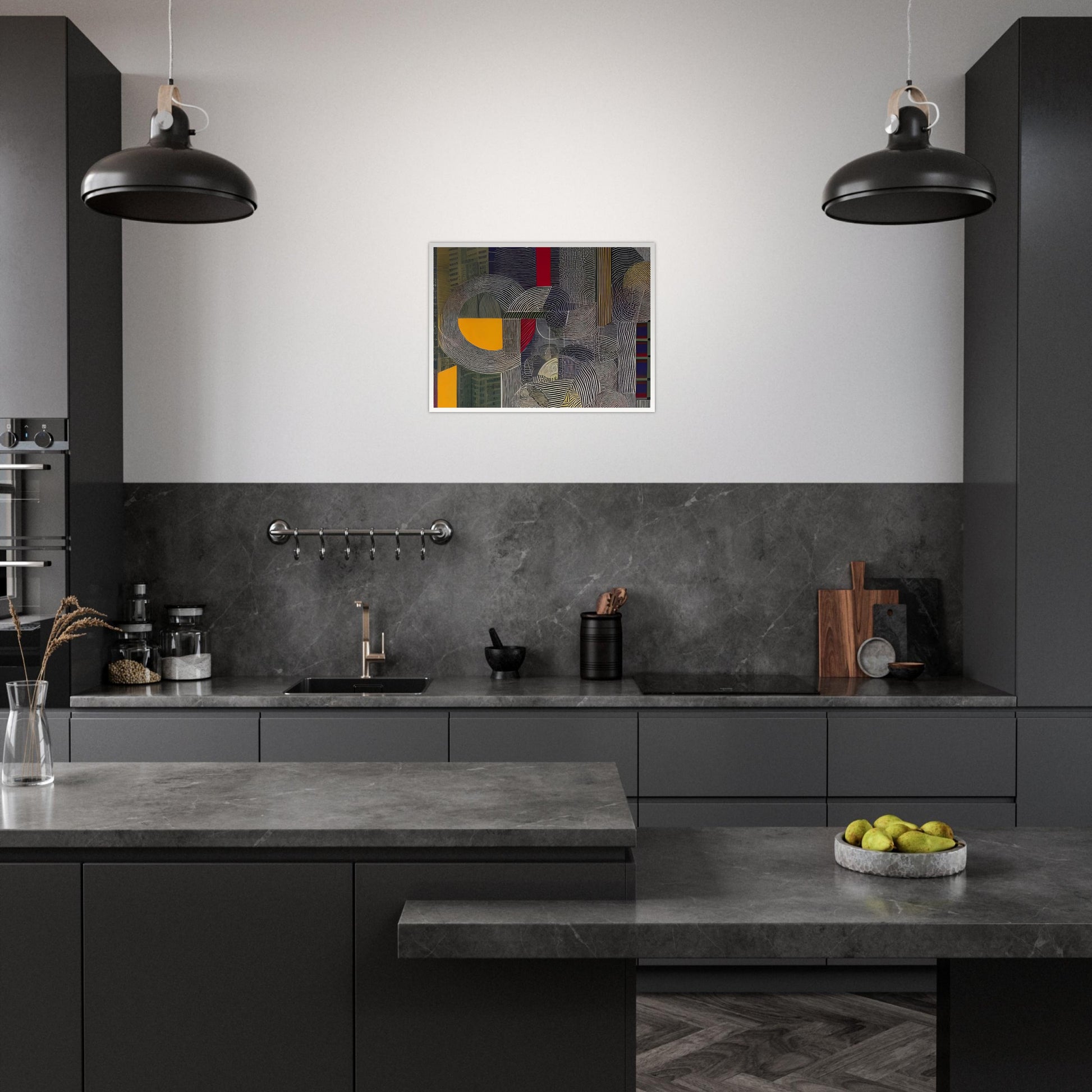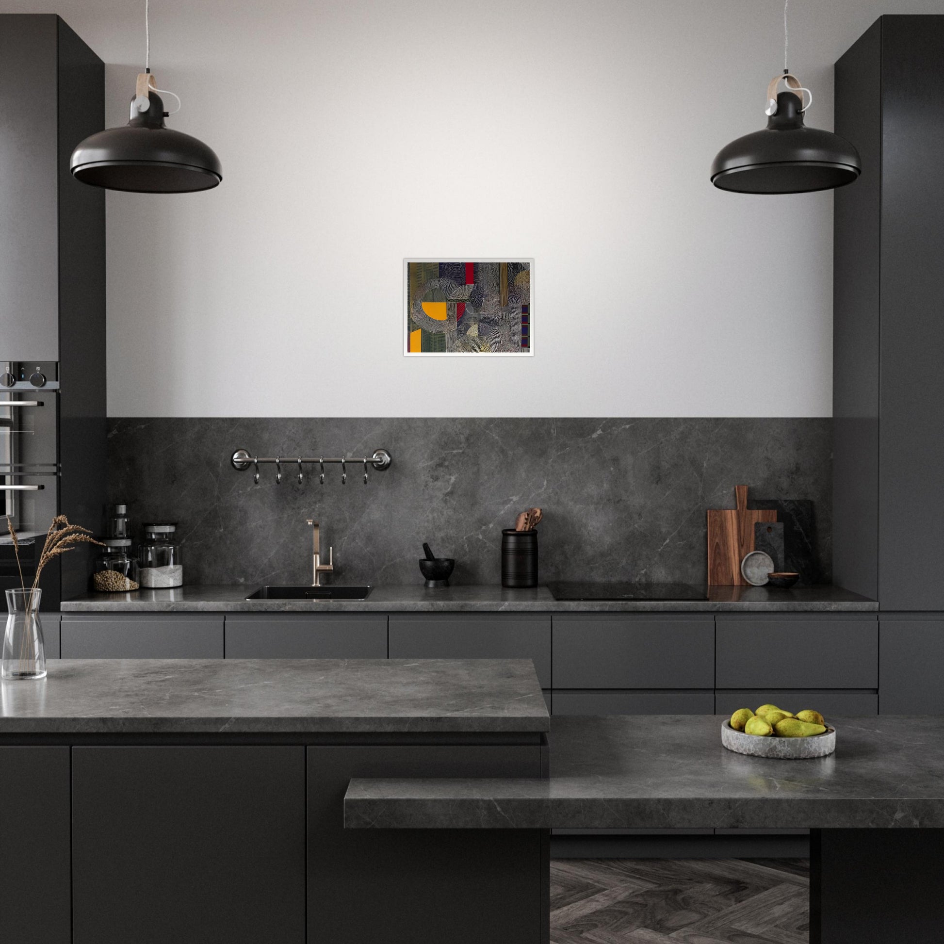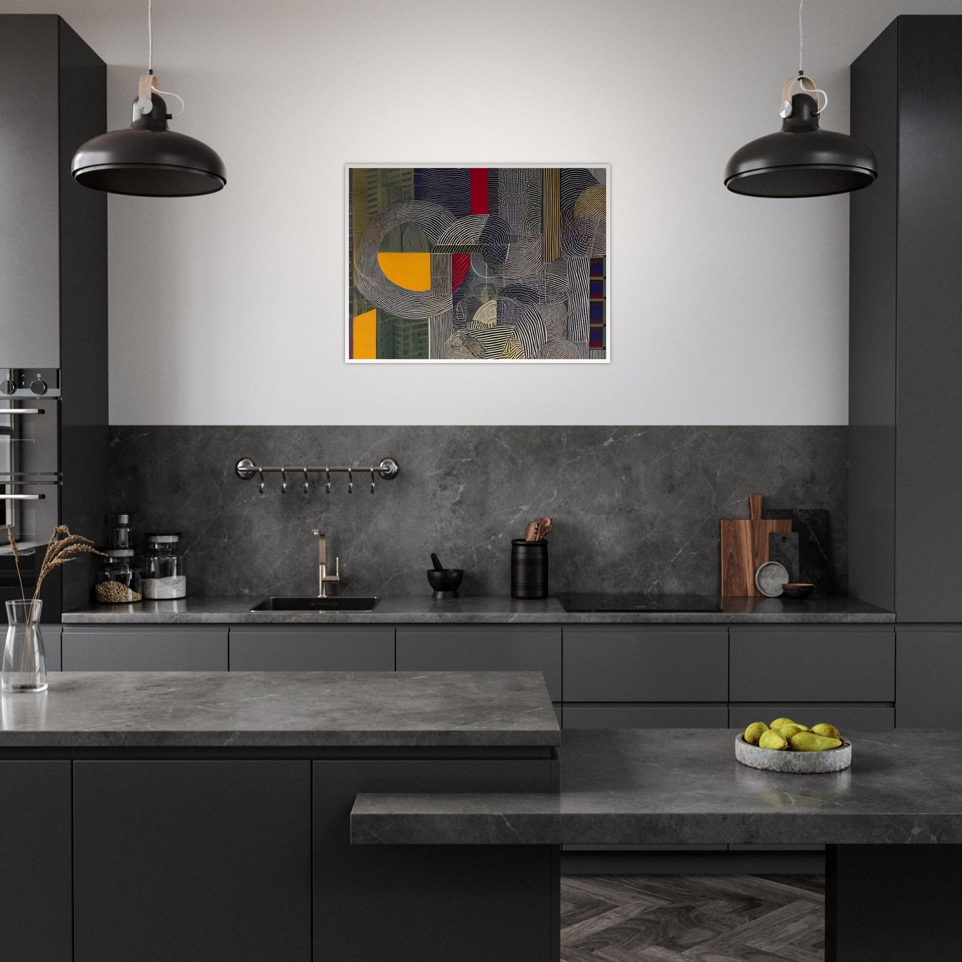 Architectural Rhythms wall art blends intricate geometric patterns with a bold color palette, creating a dynamic composition that captures the essence of modern architecture. The interplay of lines and shapes gives the piece a sense of movement and structure. This artwork is available in museum-quality prints on canvas or high-quality brushed aluminum, perfect for enhancing any contemporary space.