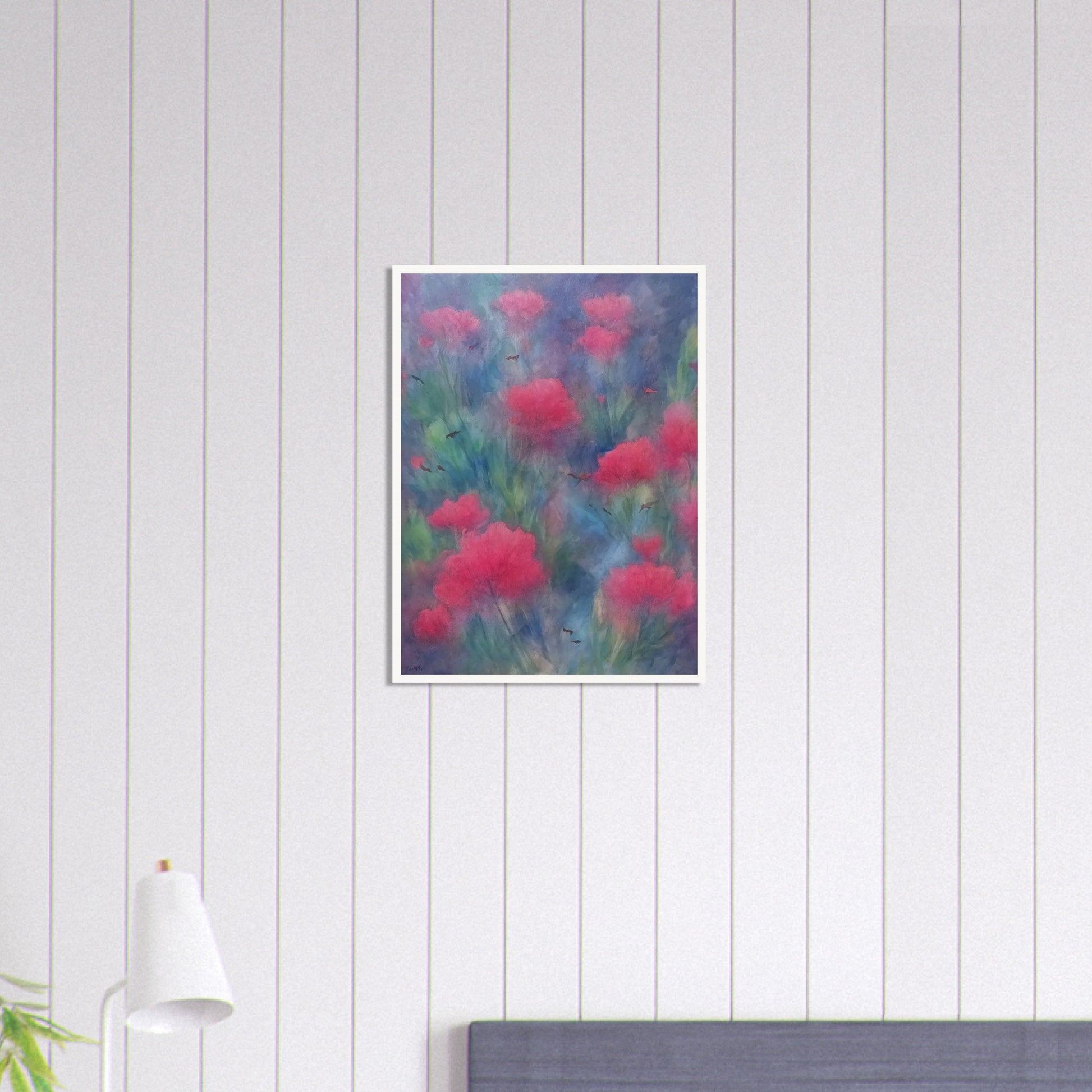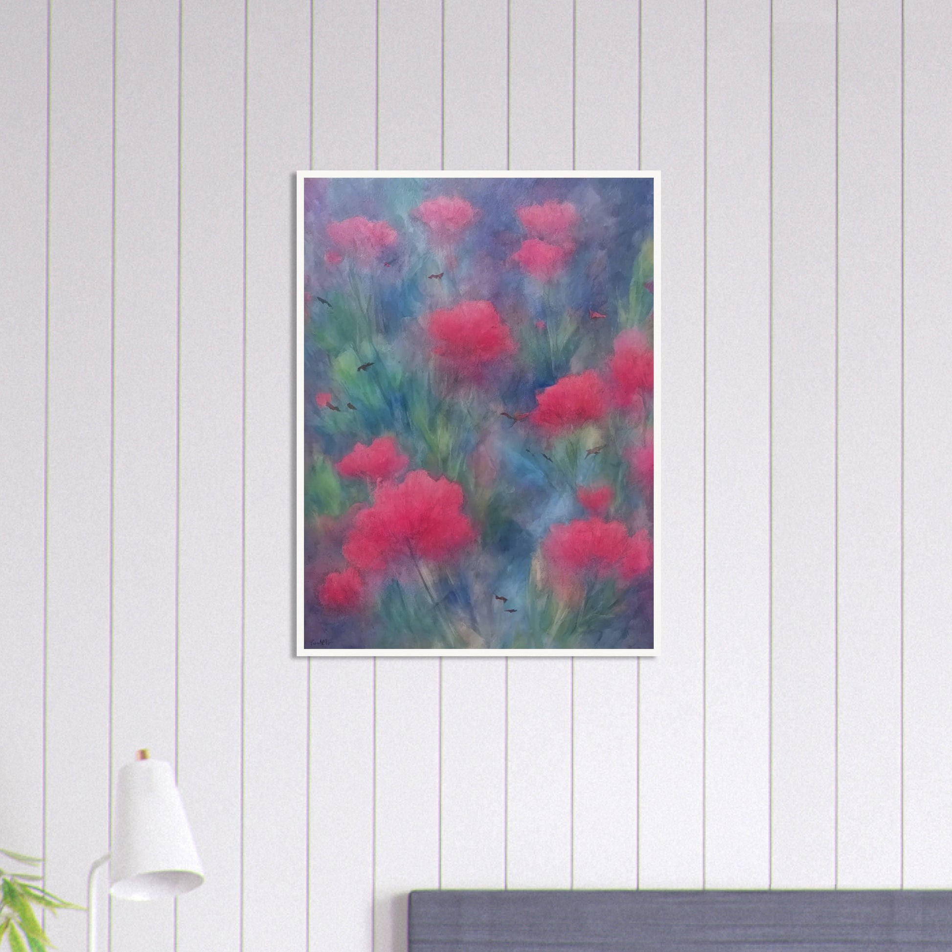 Dreamy Blossoms wall art is a captivating piece that blends vibrant hues of pink and soft blue, creating a delicate dance of color across the canvas. The artwork features abstract floral elements that exude a sense of tranquility, with the blossoms seeming to float gently within the composition. The gentle transitions of color and light evoke an ethereal, dreamlike quality. The harmonious balance of cool and warm tones in this artwork creates a soothing atmosphere, perfect for adding a touch of serenity to any room. With its abstract approach and floral inspiration, Dreamy Blossoms wall art is both modern and timeless, offering a refreshing visual experience.