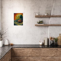 Planetary Dawn wall art transports the viewer to a vibrant, otherworldly scene where towering structures and distant planets dominate the sky. The artist's dynamic use of color, ranging from deep reds to bright yellows and greens, creates a sense of cosmic wonder and futuristic exploration. The intricate details of the space stations and celestial bodies give the artwork a surreal yet immersive quality, making it a captivating addition to any space. The composition is a balance of futuristic elements and the vastness of space, with each planet and structure thoughtfully placed to guide the viewer's eye through the scene. The interplay of light and shadow, along with the sweeping curves and lines, adds depth and movement, making the piece feel both expansive and detailed.