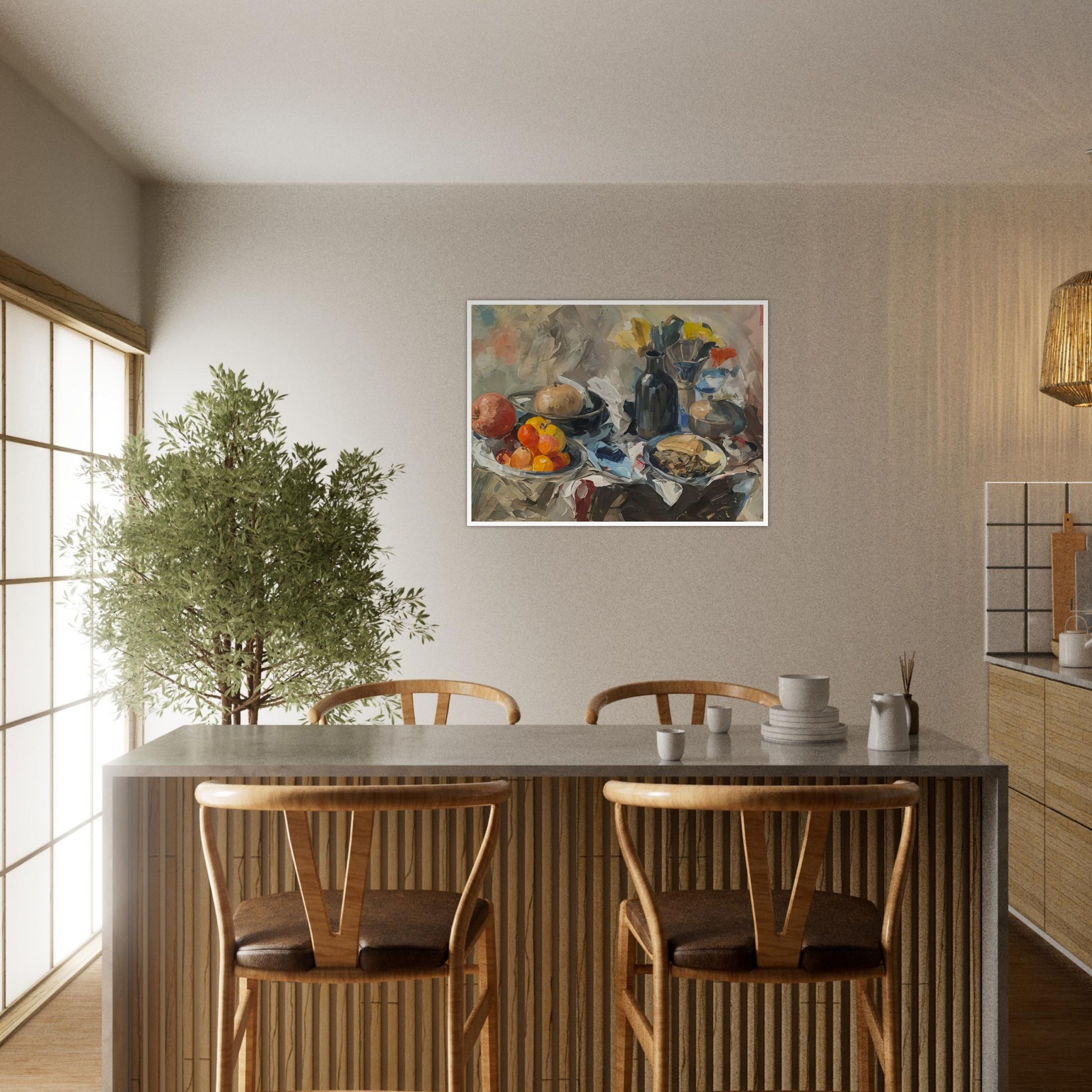Rustic Still Life wall art is a timeless piece of realism wall art, captures the simplicity and beauty of everyday objects arranged in a traditional still life composition. The artwork’s muted color palette and textured brushstrokes bring warmth and character to the scene, evoking a sense of nostalgia and appreciation for the simple pleasures of life. The combination of earthy tones, coupled with the careful rendering of fruits, pottery, and fabric, creates a harmonious and inviting composition. The subtle interplay of light and shadow adds depth, making this piece a perfect embodiment of rustic charm.