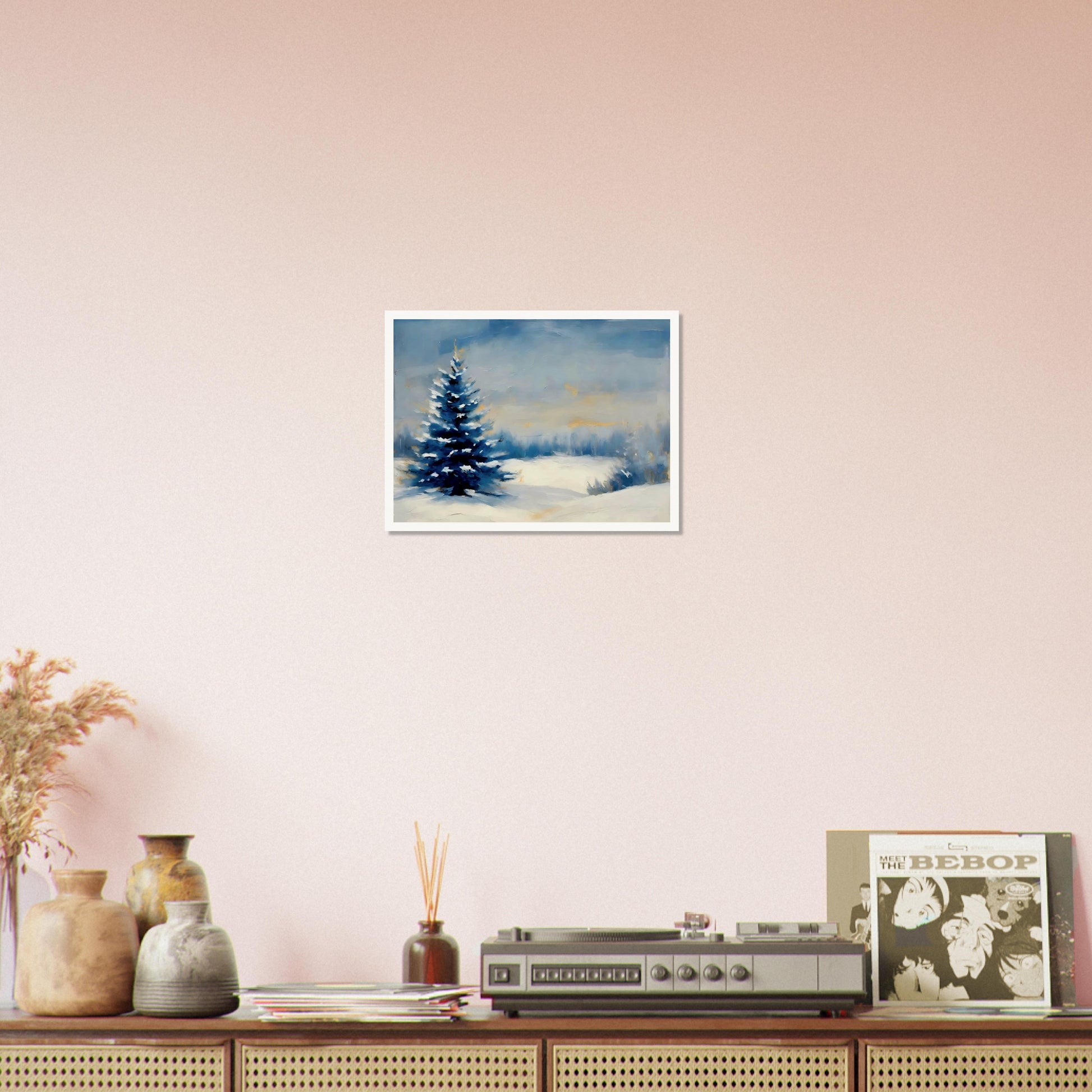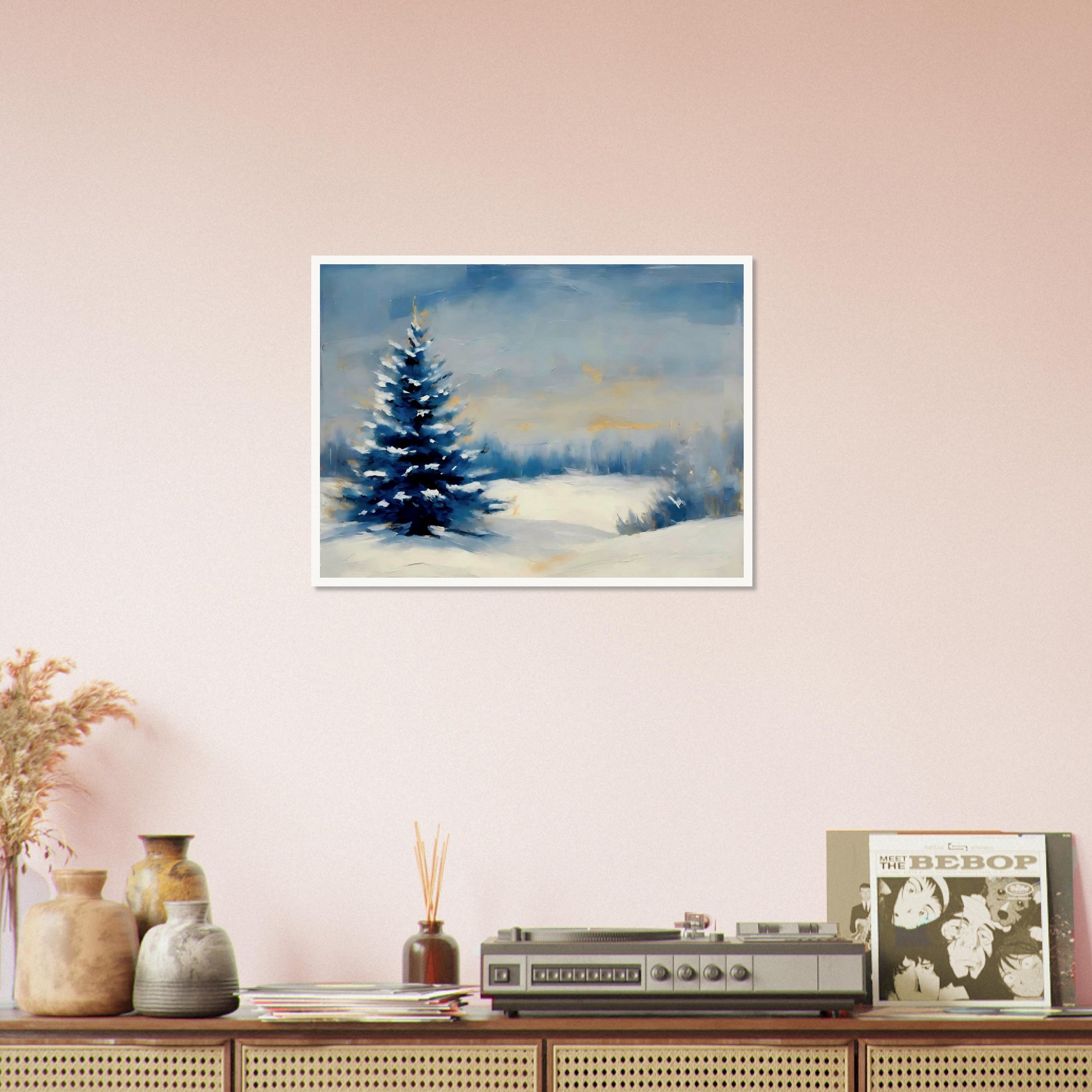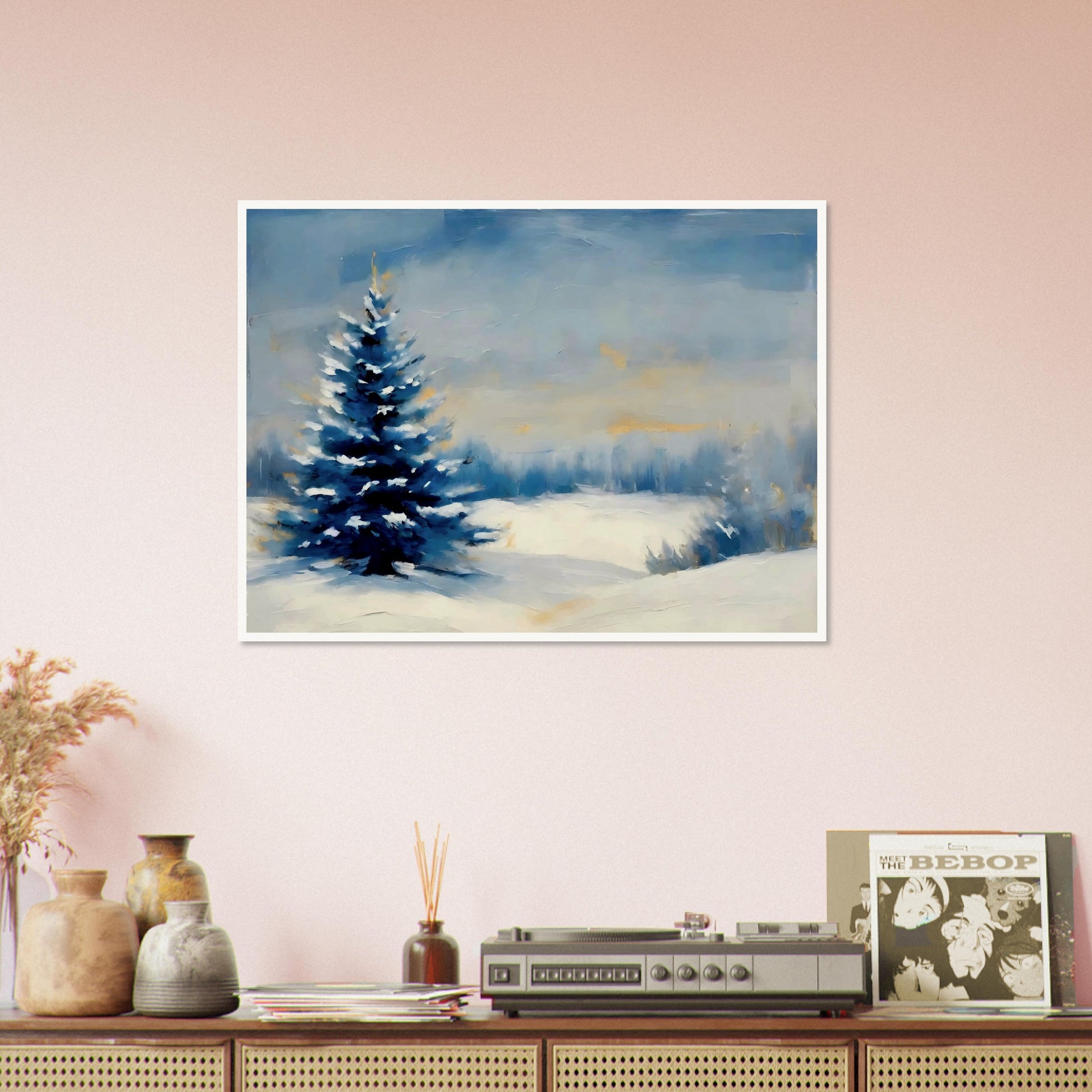 Serene Snowy Pine wall art recreates the tranquil beauty of a snow-covered landscape, where cool blue tones and soft textures create a calming winter scene. The detailed brushstrokes bring depth and realism to this peaceful depiction of nature.