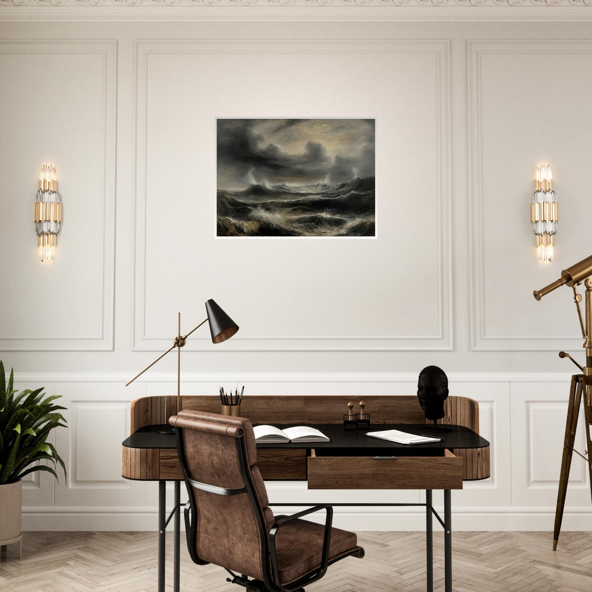Tempestuous Seas wall art captures the raw power and majesty of an ocean caught in the throes of a storm. The dark, swirling clouds and tumultuous waves are rendered in a realistic style, drawing the viewer into the intensity of the scene. This artwork's dramatic contrast and intricate details make it an ideal piece to add a touch of nature’s grandeur to your living space, creating a bold and captivating atmosphere.