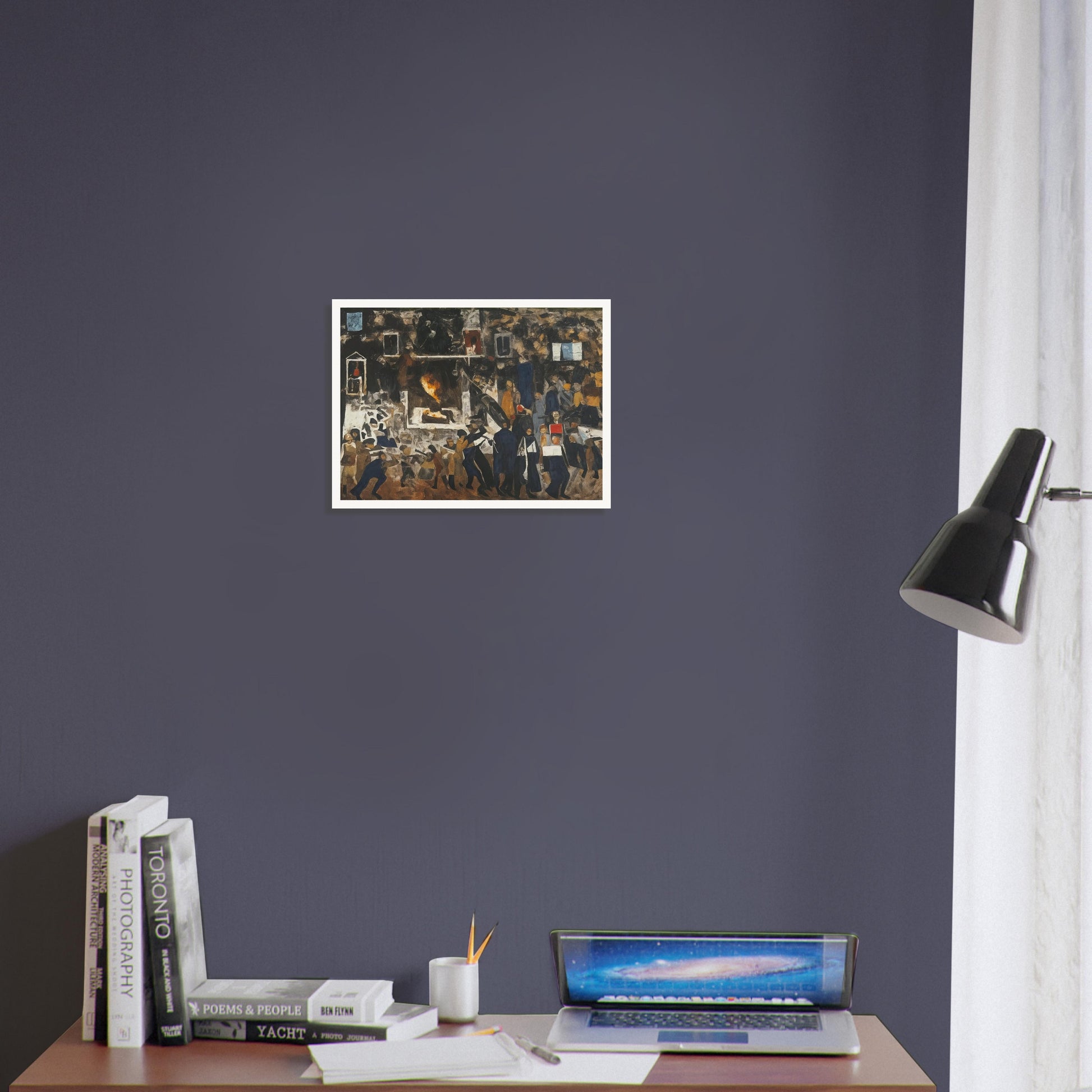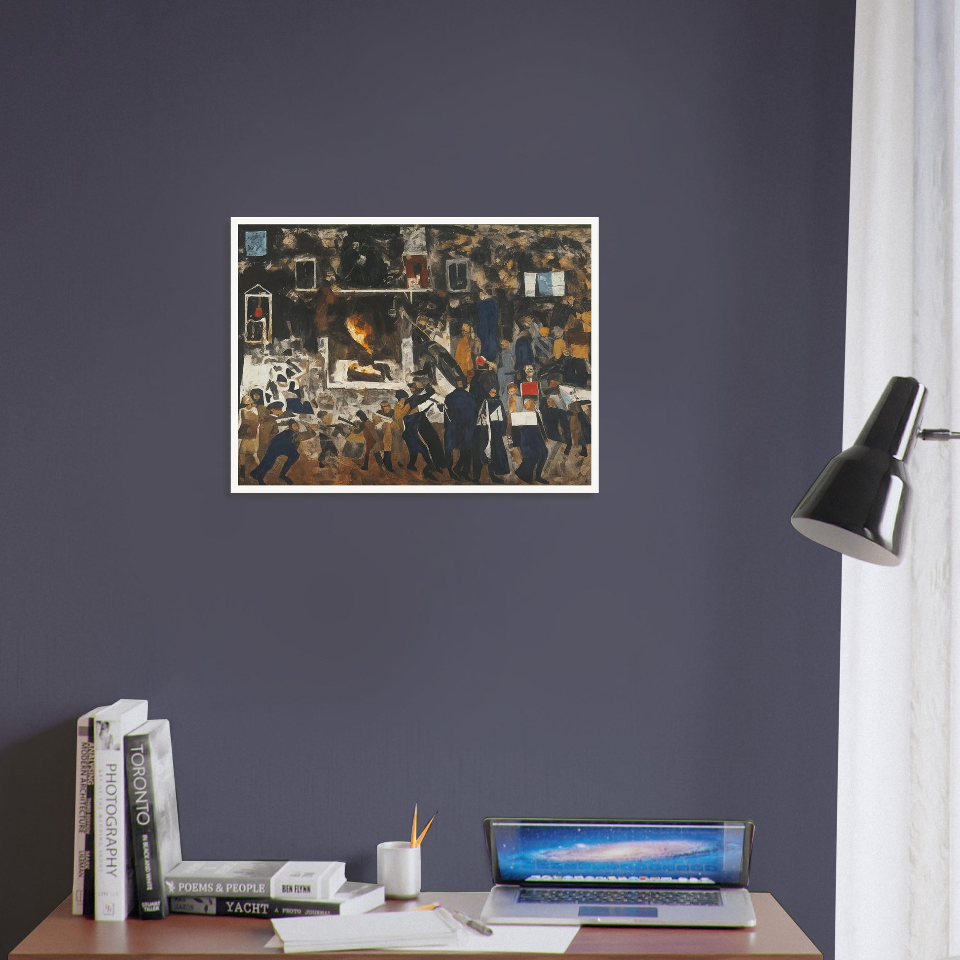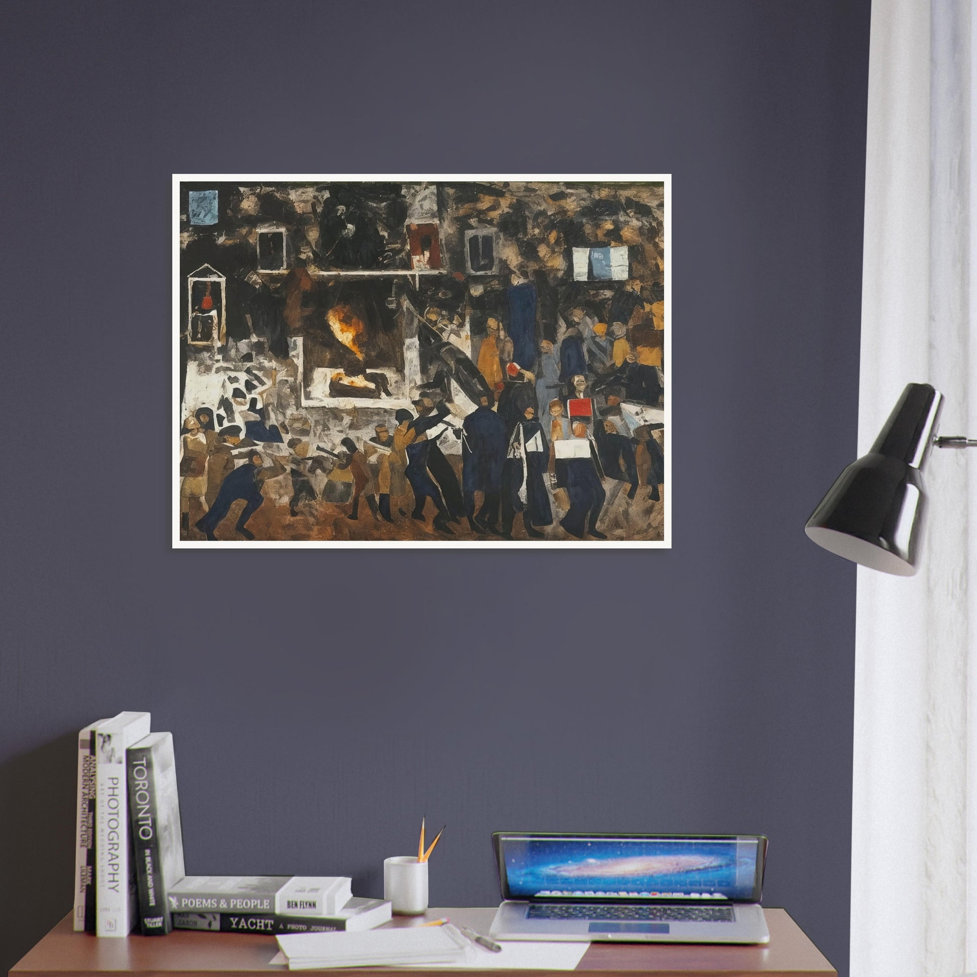 The People Rise wall art captures the raw energy and movement of a crowd in the midst of a powerful uprising. This expressive piece uses bold, earthy tones and dynamic brushstrokes to convey the intensity and emotion of the scene, making it a compelling addition to any space. The chaotic composition reflects the turmoil and strength of the people as they come together, creating a sense of unity and resilience.